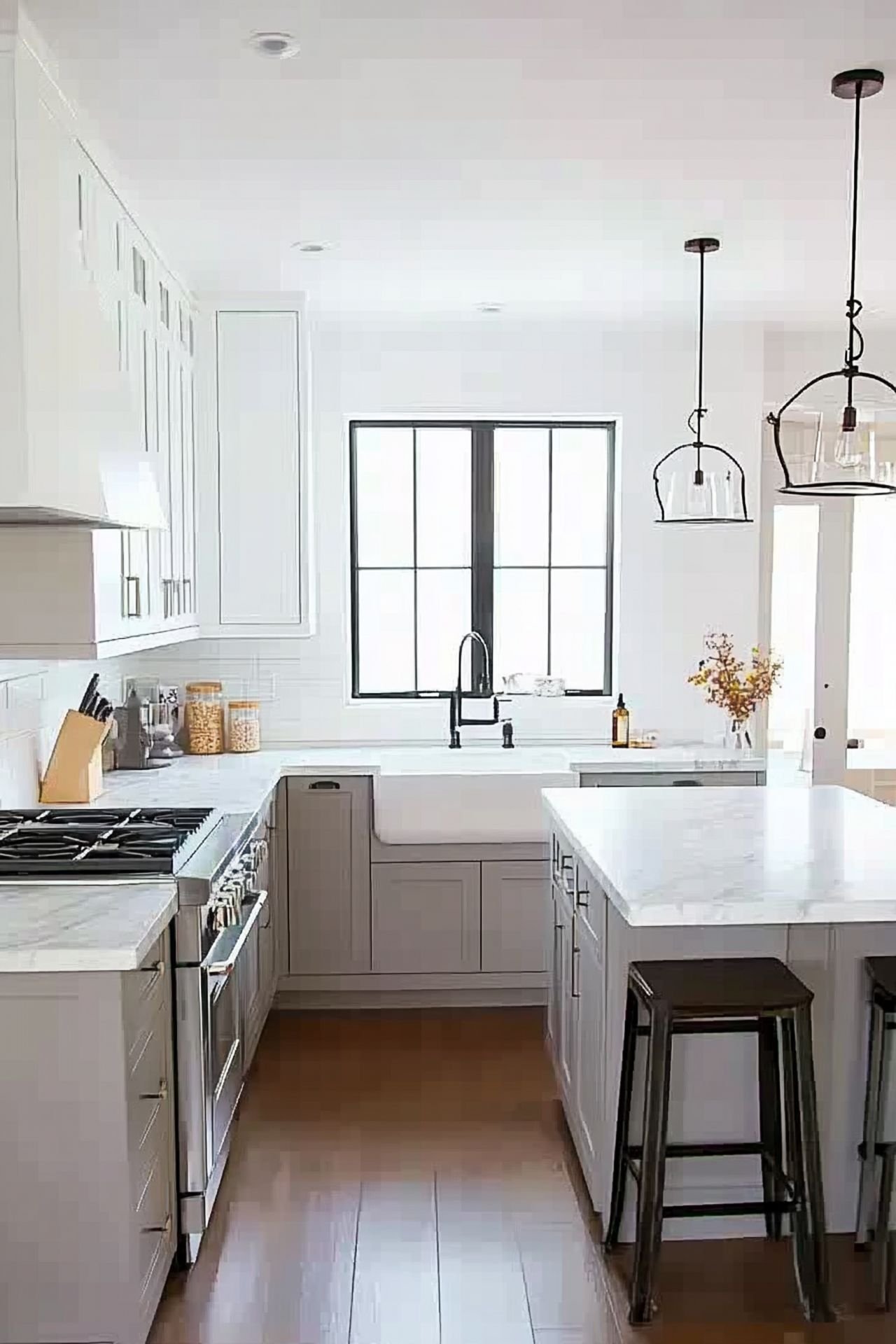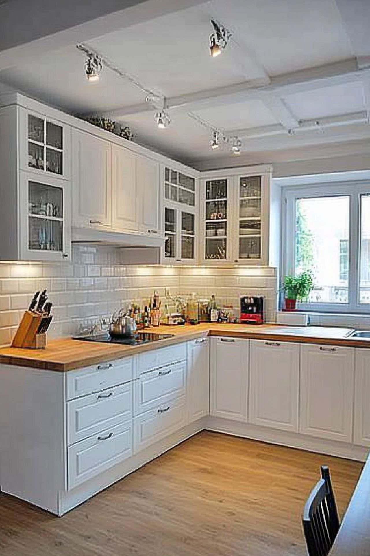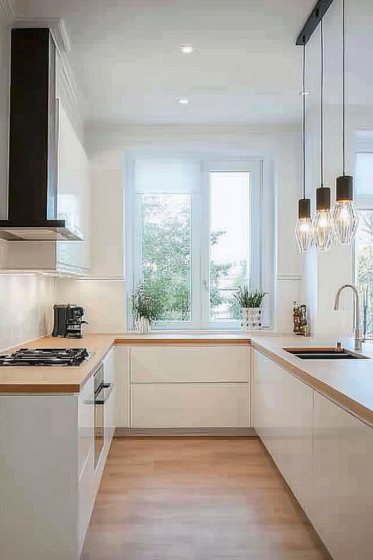 Good lighting is essential in a U-shaped kitchen. Mix task, ambient, and natural lighting for a bright and welcoming space. Proper lighting and window placement enhance both the look and function of your kitchen.