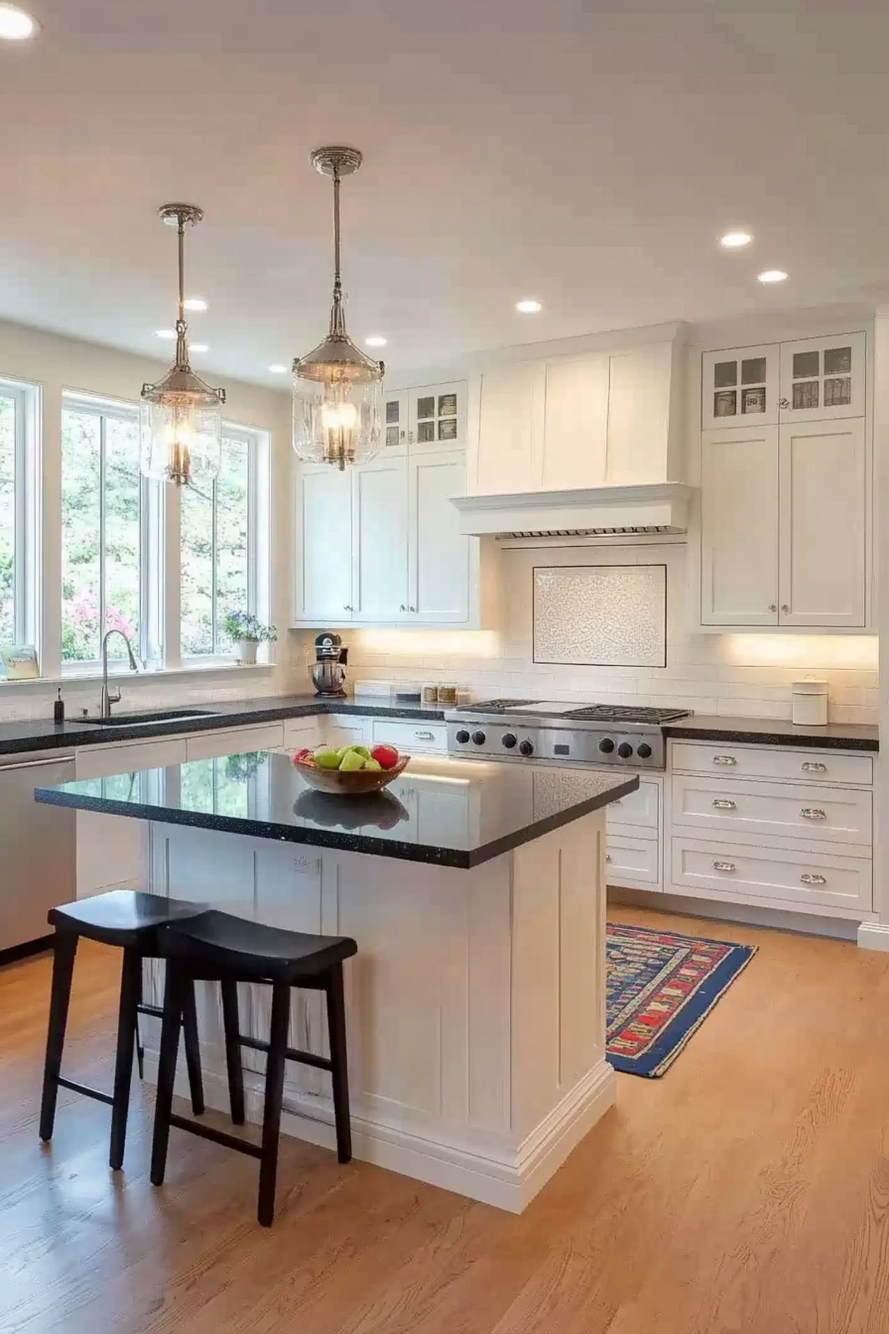 Lighting is key in U Shaped Kitchen Remodel Ideas. A well-lit kitchen is more inviting and functional. It’s important to mix task, ambient, and natural lighting.