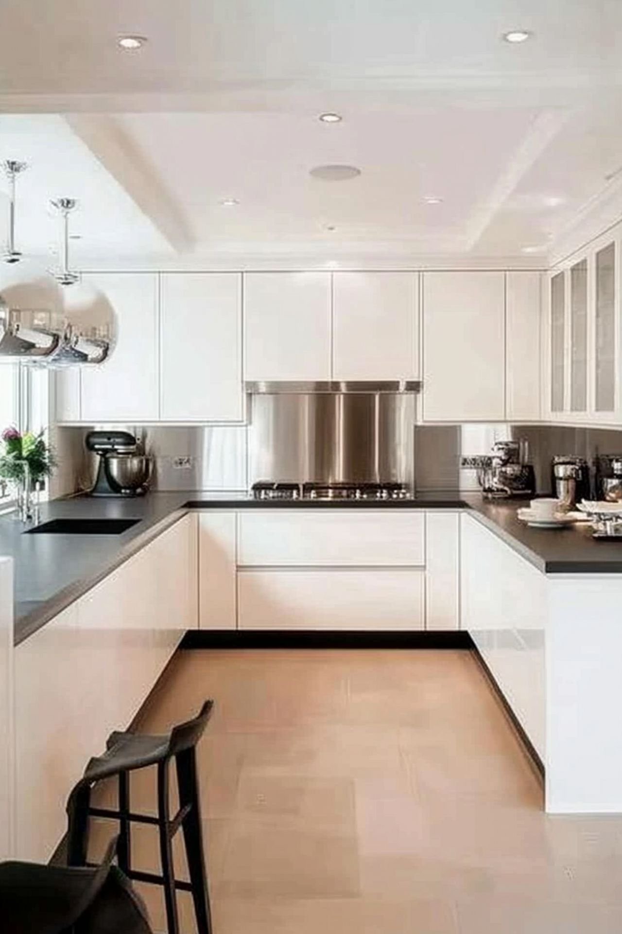 In a Kitchen Design Small U Shape, every inch matters. Corner cabinets with lazy Susans or pull-out shelves make the most of wasted space. Vertical storage, like tall cabinets or open shelving, keeps the space organized and clutter-free.