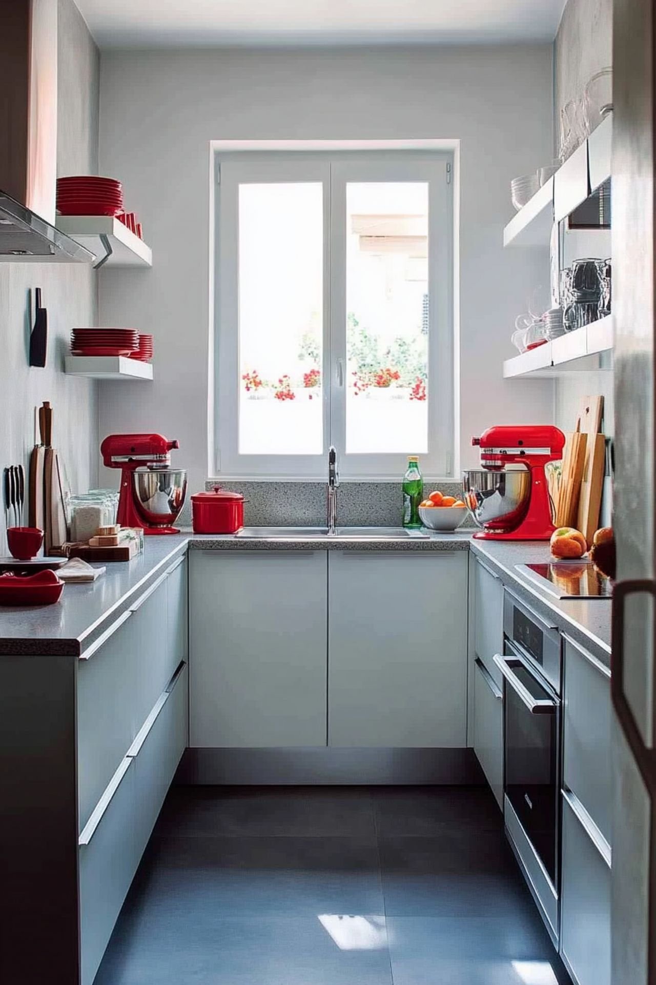 In a small U-shaped kitchen, use compact appliances and wall-mounted storage. Choose multifunctional furniture to save space. Smart planning and placement make a small kitchen both functional and stylish.