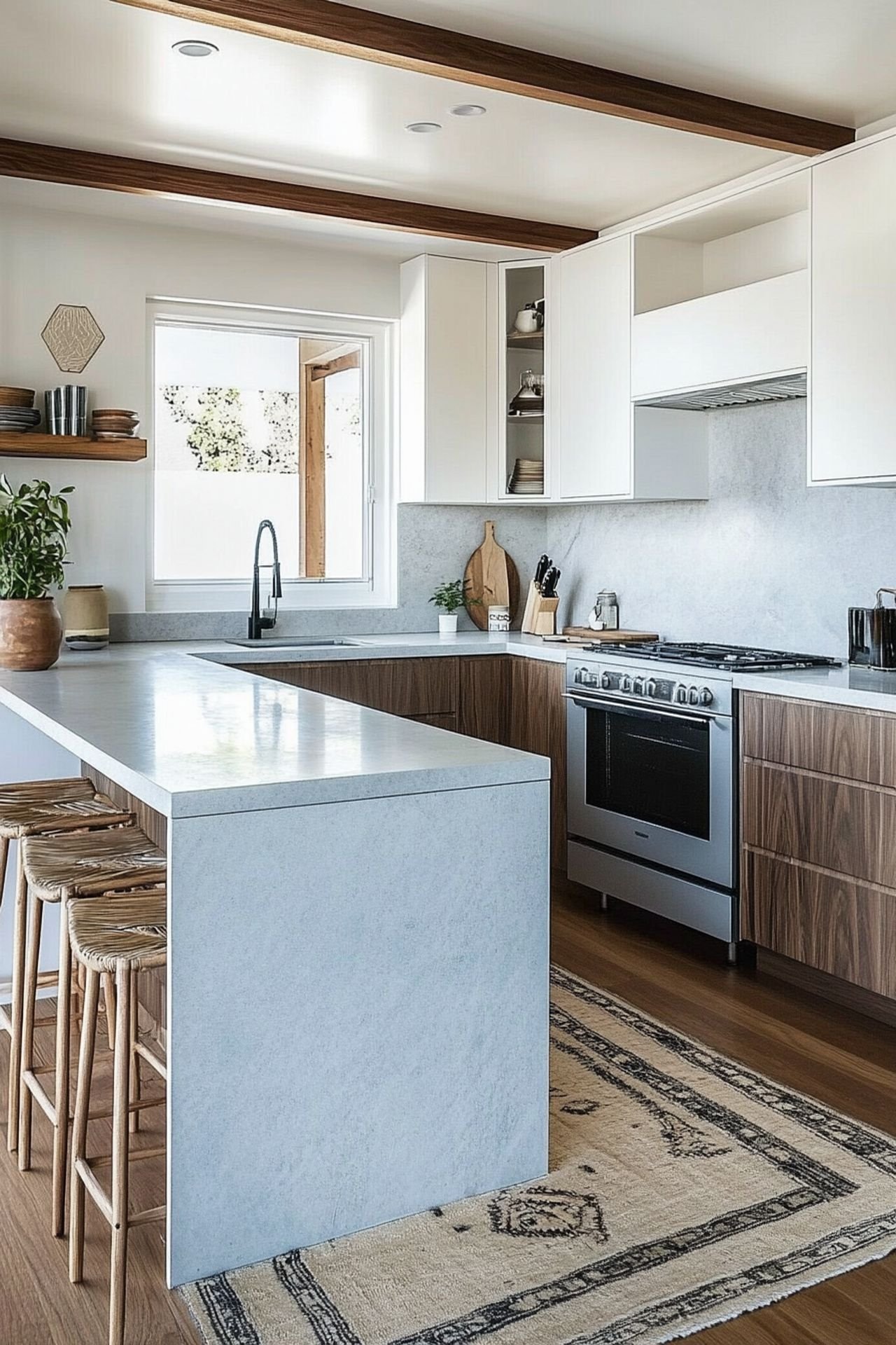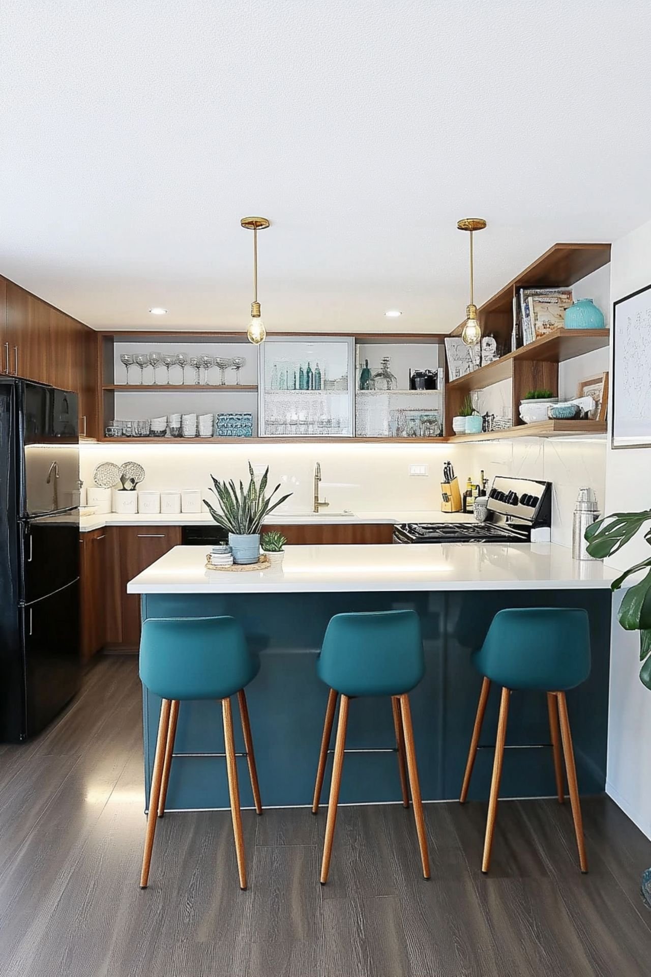 - Create a cozy dining nook inside the U-shaped peninsula.
