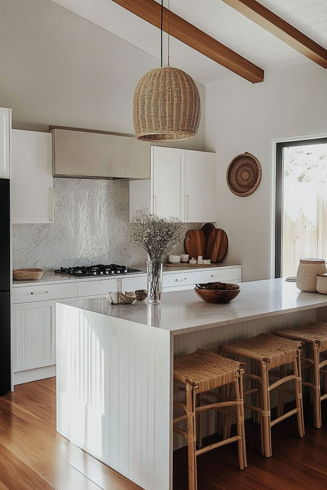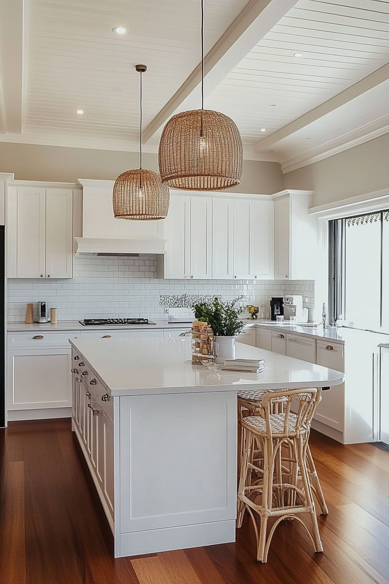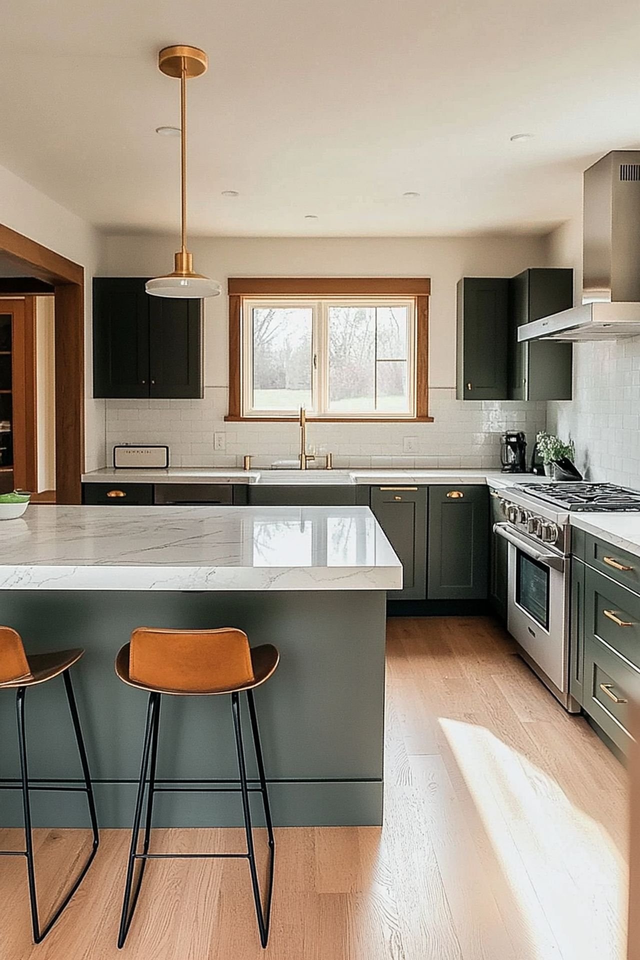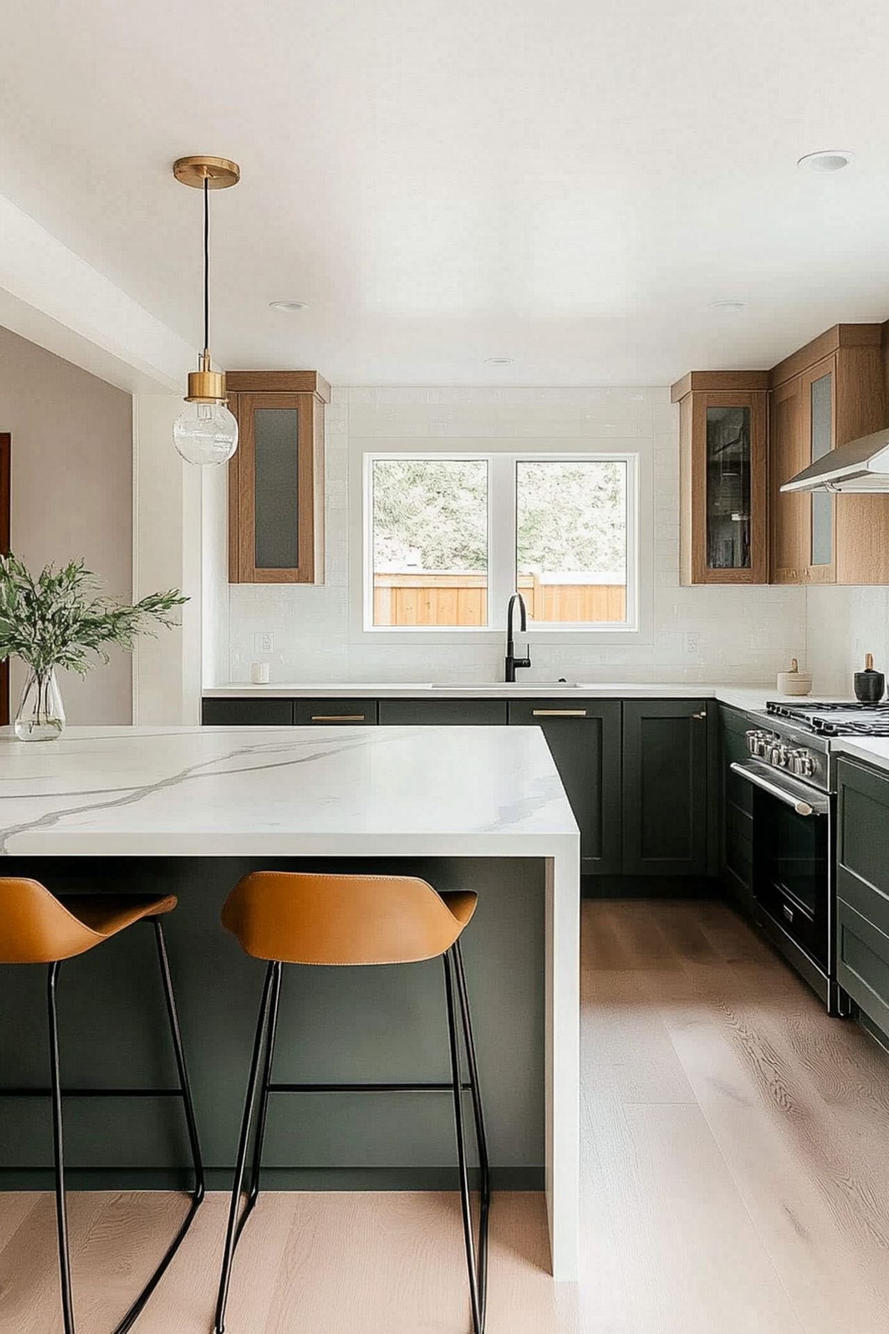 These design elements can turn your kitchen into a beautiful and useful space. Adding a pendant light can also add interest and break up the vertical space.