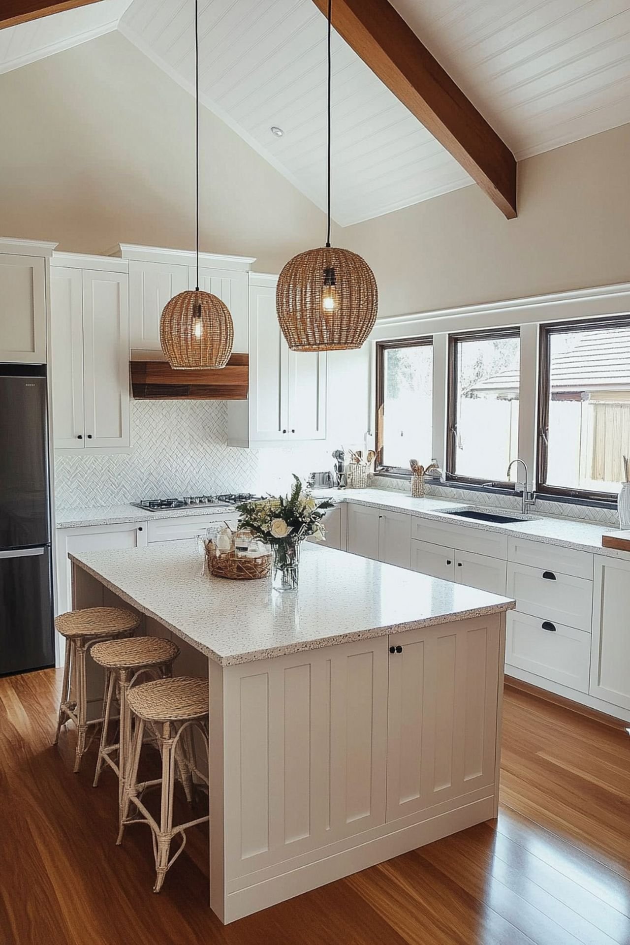 Think about your kitchen’s size and flow when deciding on an island. A big island adds space but might block the way. Make sure there’s enough room around it.