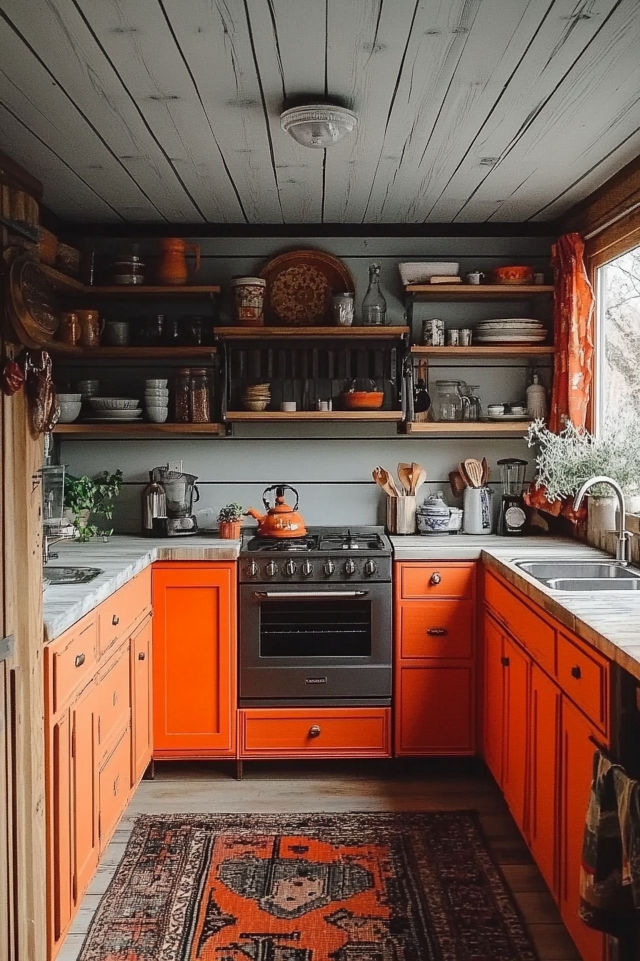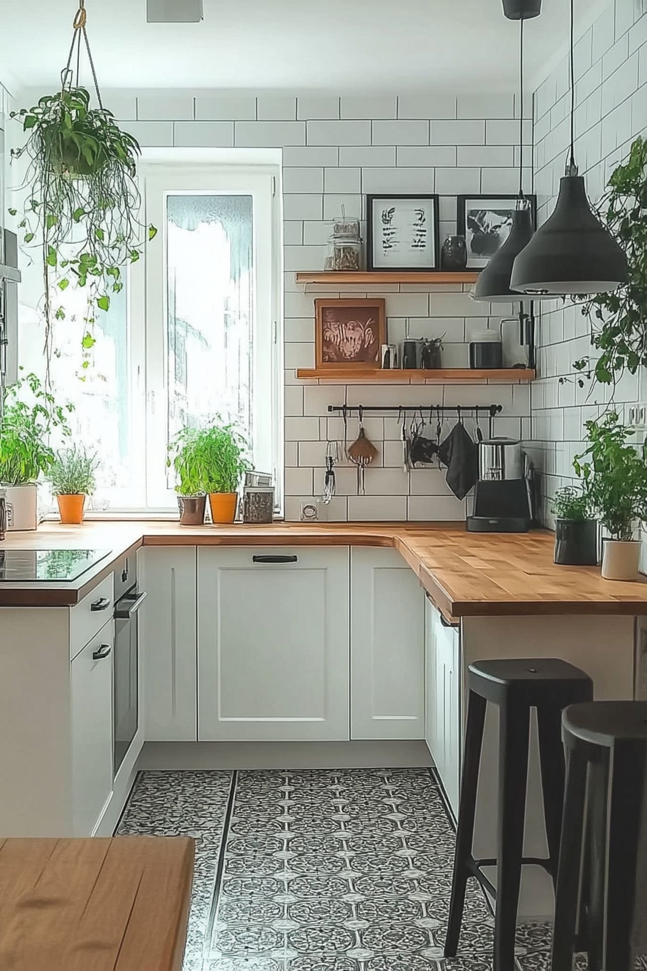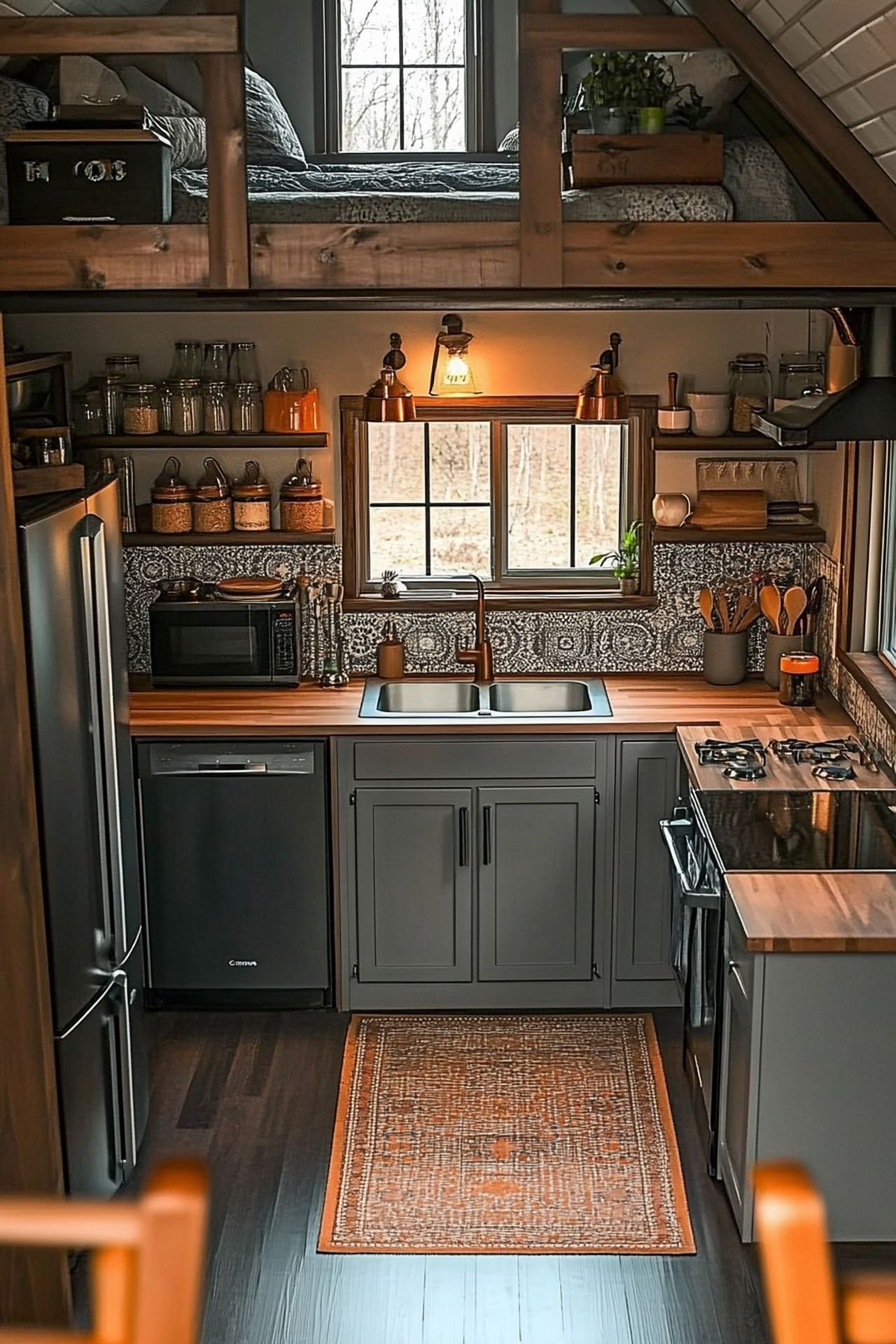 DIY design and cost-effective materials are the way to go, says TastyInteriors. You can use vertical space for storage, hang pots and pans, and add small rugs for color and warmth.