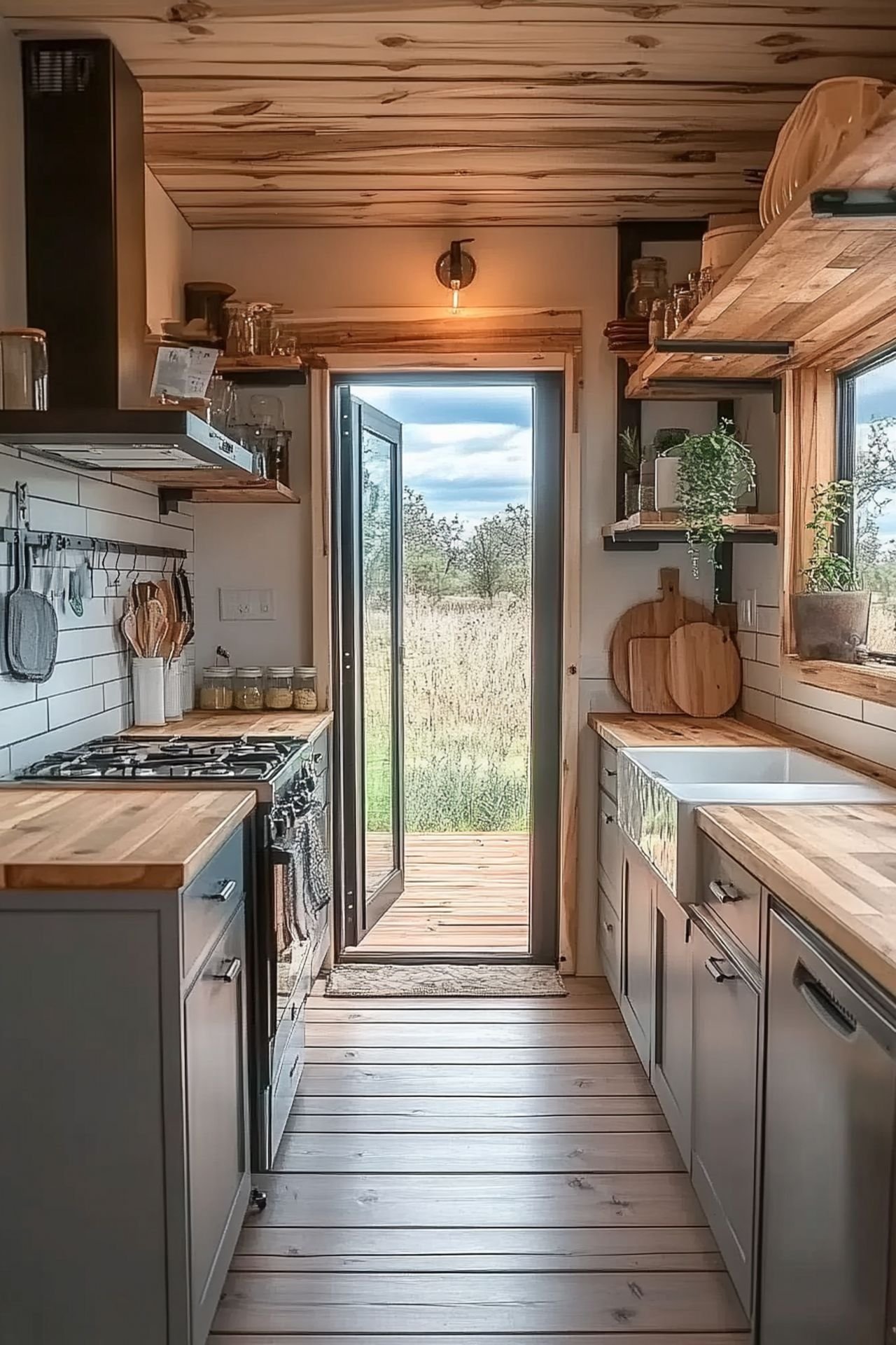 In tiny kitchens, consider custom cabinetry, pull-out cabinets, and corner cabinets. These configurations offer a functional and efficient storage solution.