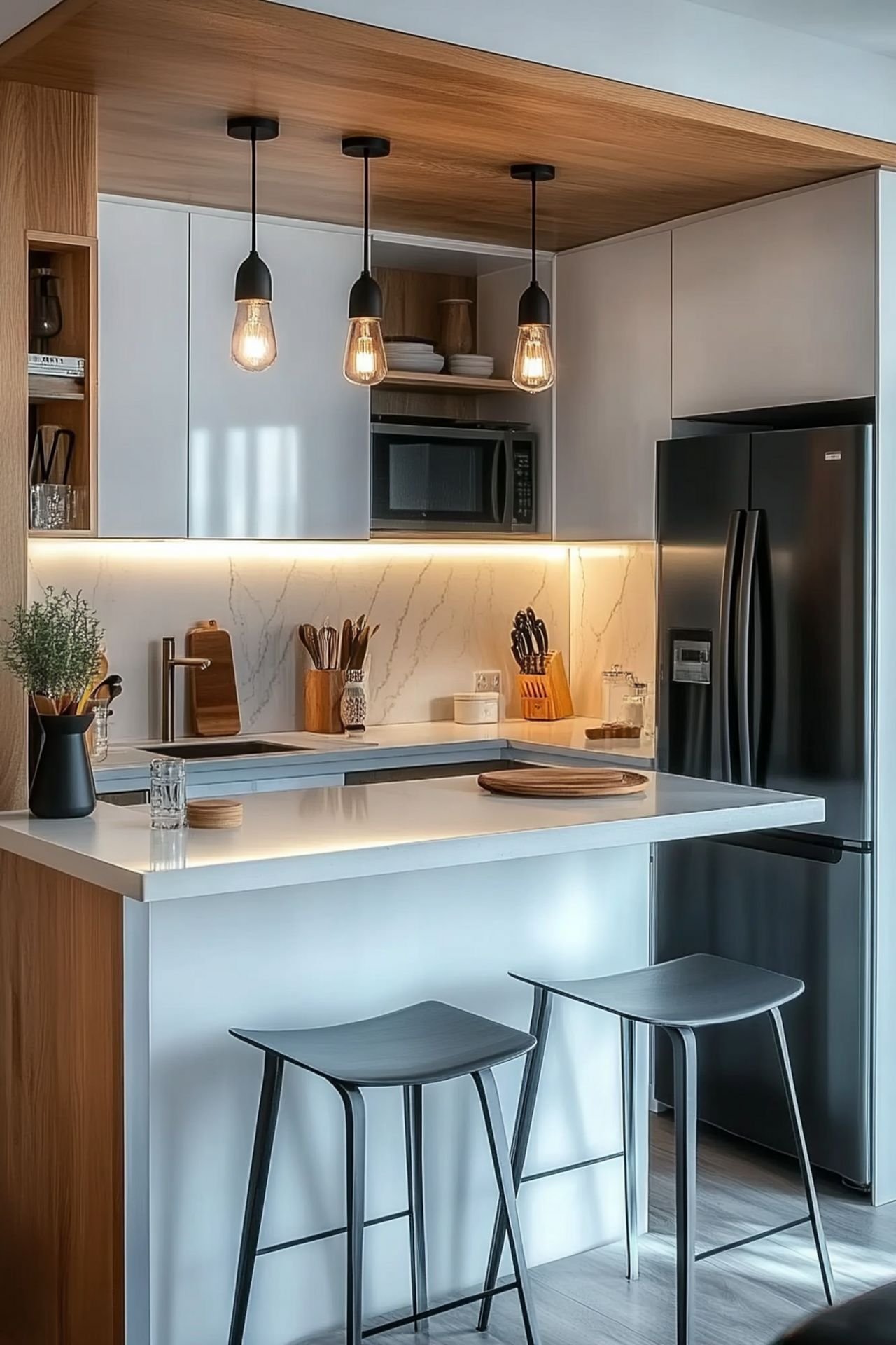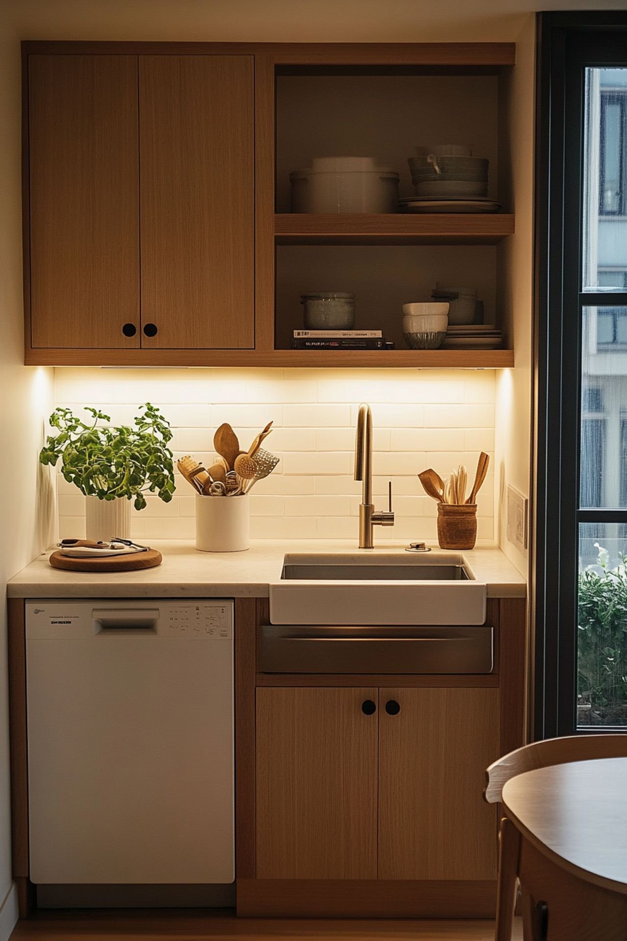 Use natural light, LED lighting, and layered lighting to make your mini kitchen feel larger. These techniques can enhance the space’s visual appeal.