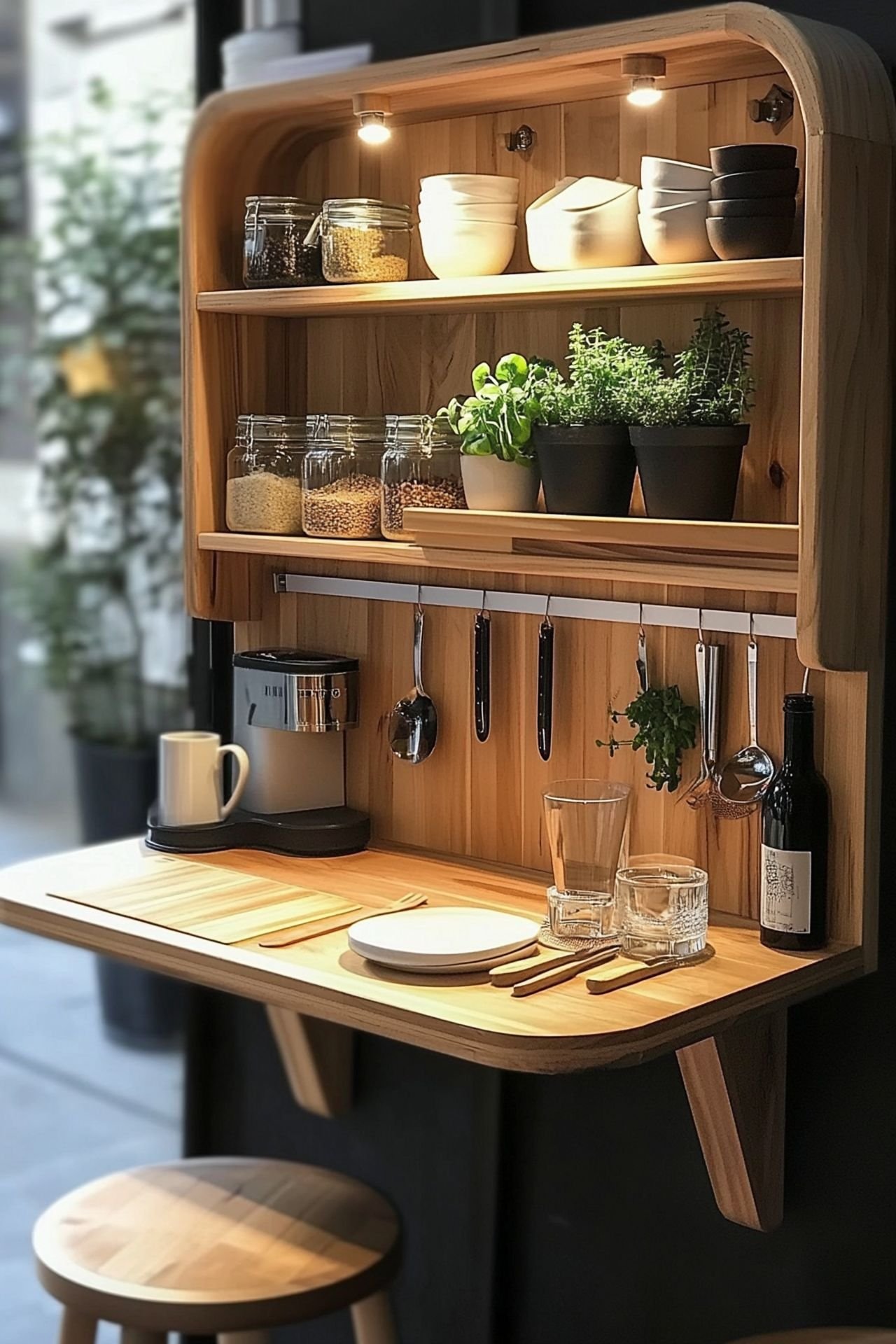 By combining open shelving and closed storage, you can make your mini kitchen both functional and stylish.