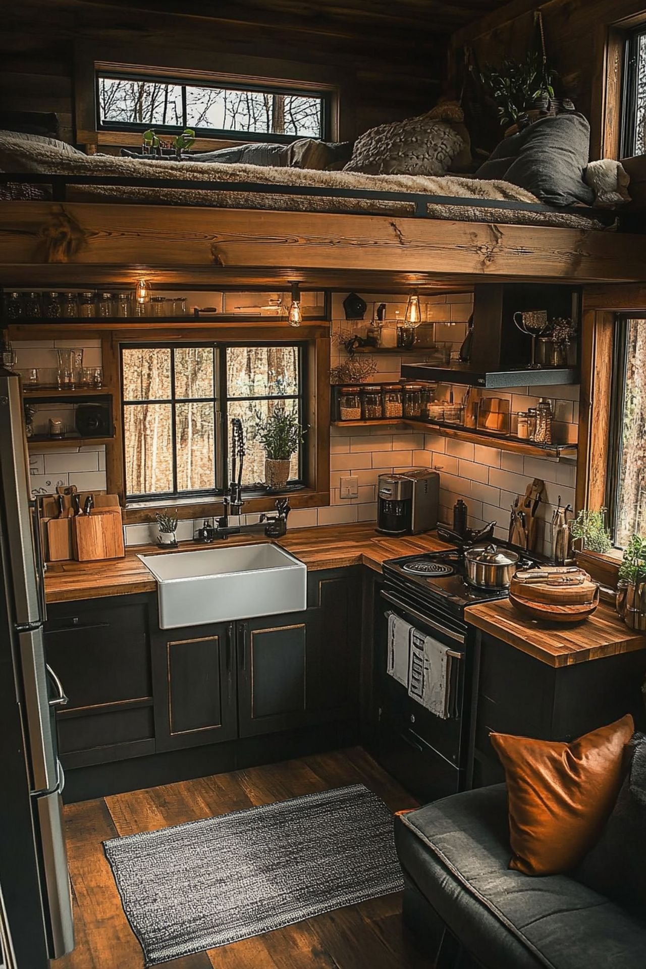 - Lighting techniques and color schemes also play a big role in making your mini kitchen feel larger.