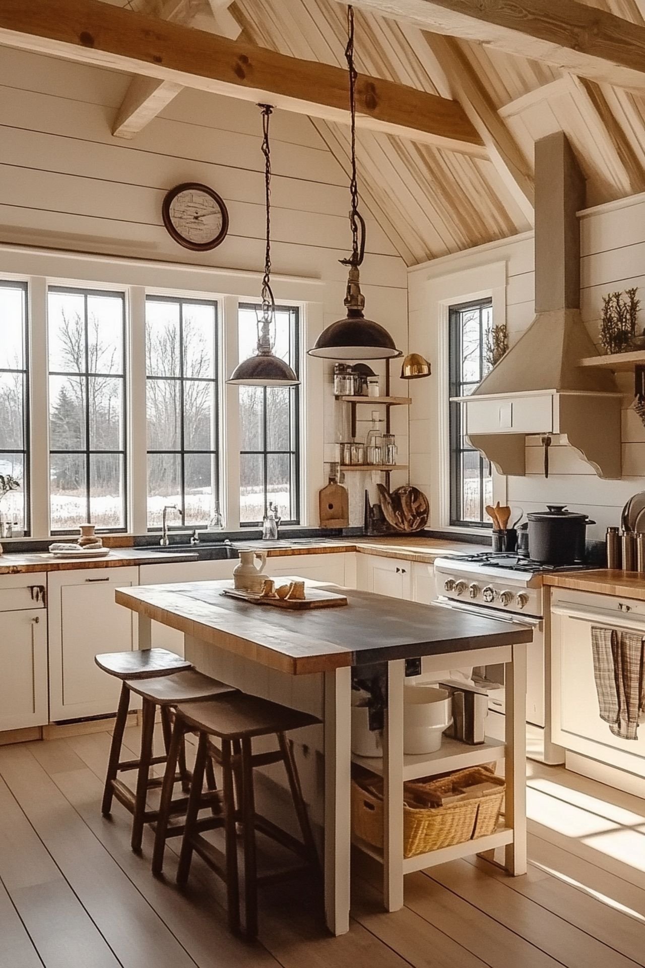 - Vintage or farmhouse-style elements, such as rustic farm tables and copper accents