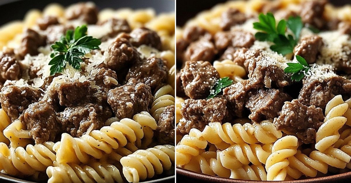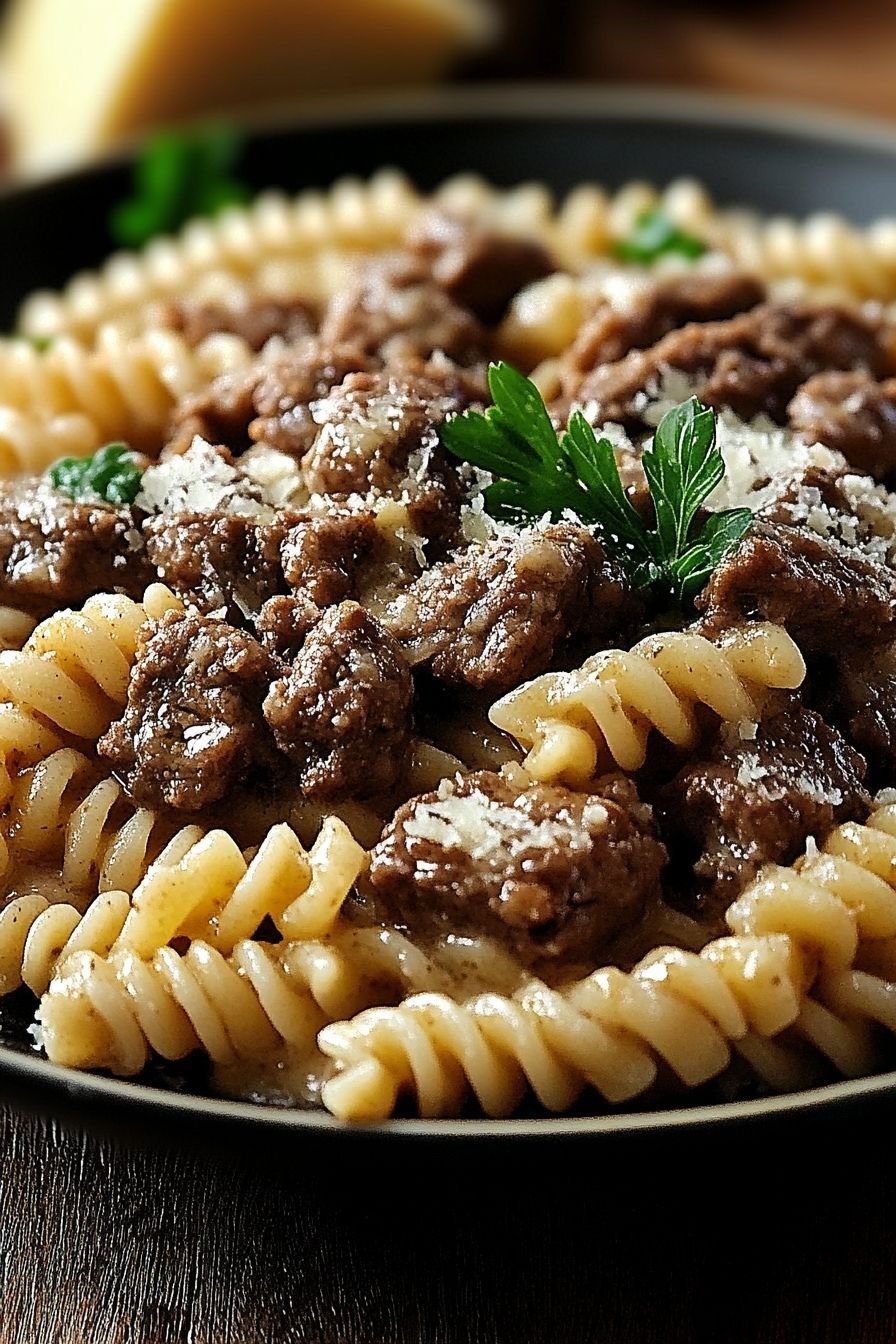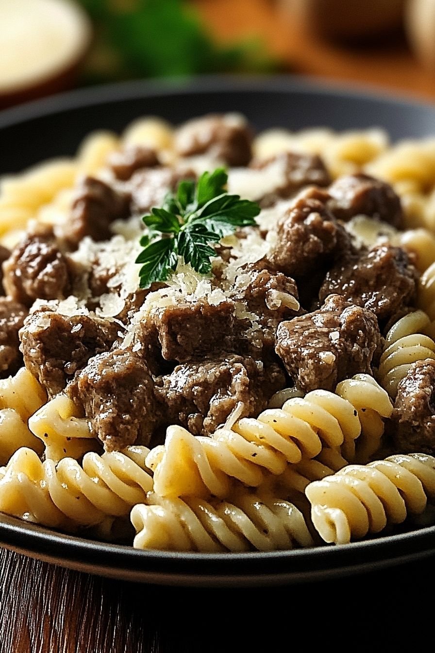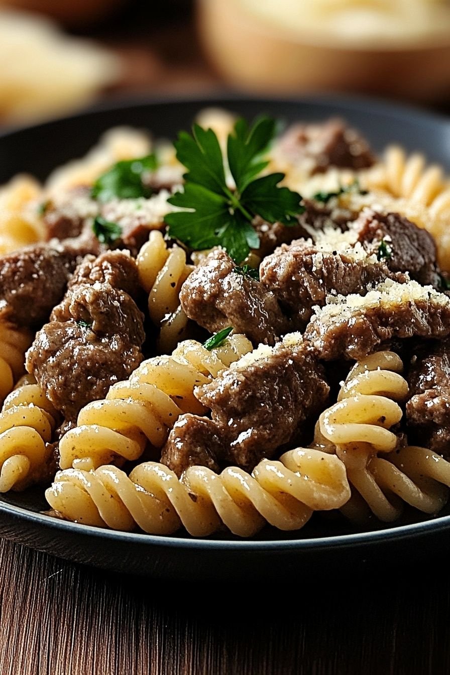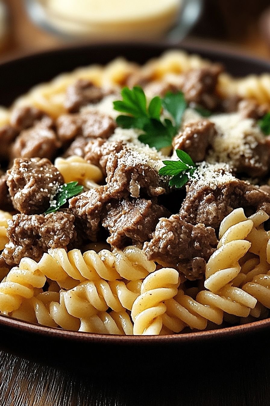 Beef and Rotini in Garlic Parmesan Sauce