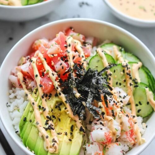 This sushi bowl has everything: protein from the crab, healthy fats from the avocado, and a good dose of veggies. It fits in just as well alongside your favorite easy vegan soup recipes as it does next to a hearty beef pasta. It’s one of those easy recipes that never gets old—flexible and fun every single time.