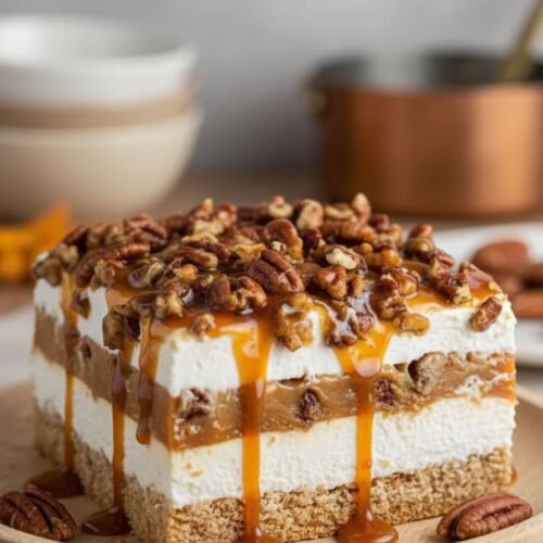 This caramel pecan dessert lasagna is an indulgent, no-bake layered delight that’s easy to make and perfect for holidays or casual gatherings. Made with creamy layers, crushed cookies, and toasted pecans, it’s a show-stopping treat that brings flavor and texture together in every bite.