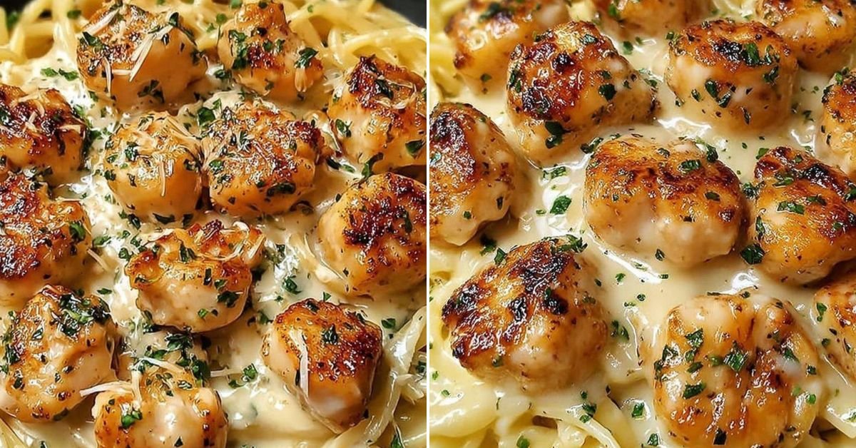 Garlic Butter Chicken Bites With Creamy Parmesan Pasta