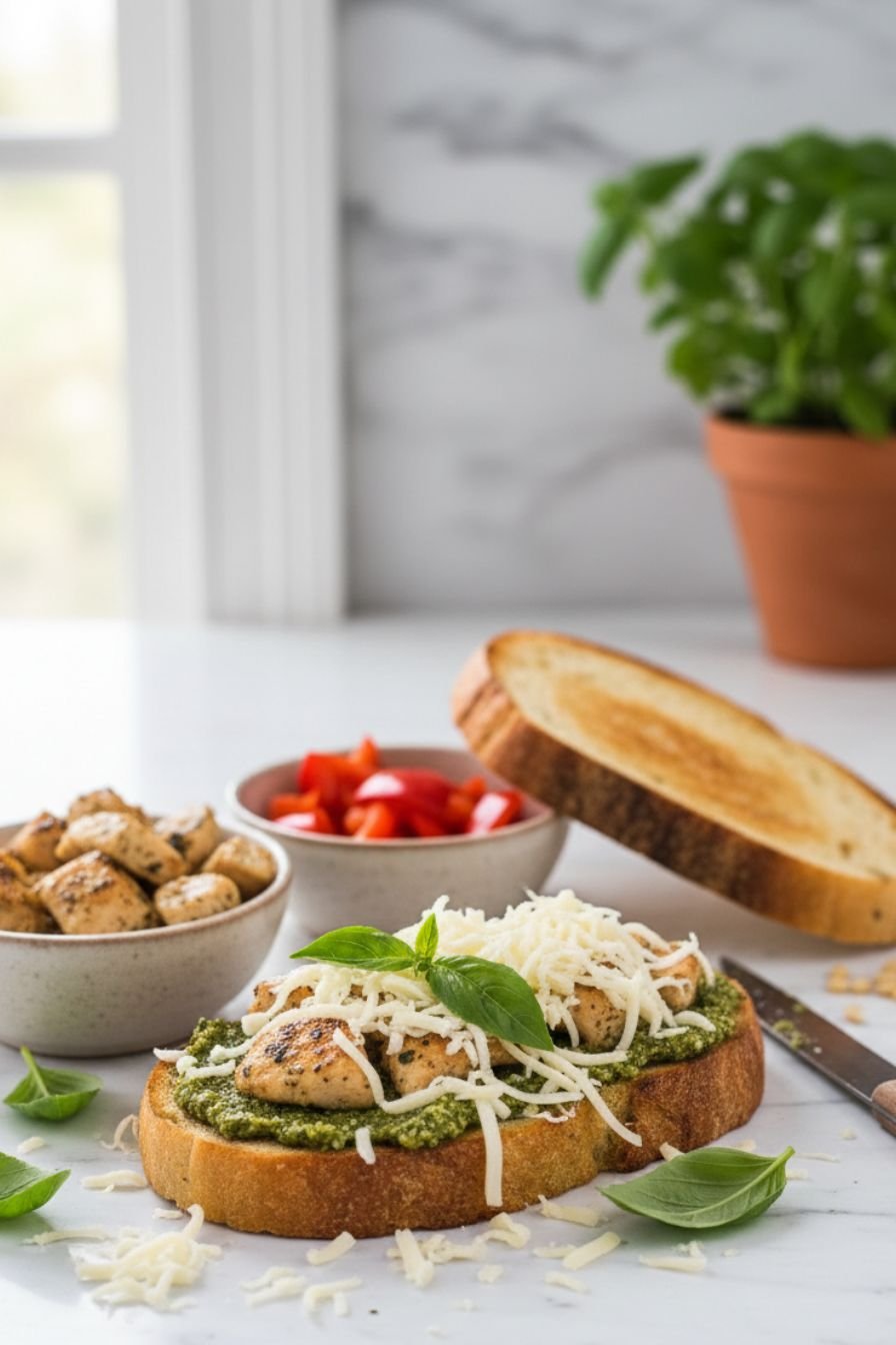 The classic Caprese salad—tomato, mozzarella, and basil—is a masterpiece of simplicity. By adding tender, seasoned chicken and pressing it all between slices of crusty bread, we elevate it into a warm, comforting, and complete meal. The heat gently melts the cheese, softens the tomatoes, and marries the flavors of the pesto with the chicken in a way that’s utterly irresistible. It’s a familiar flavor profile that feels exciting and new in sandwich form.