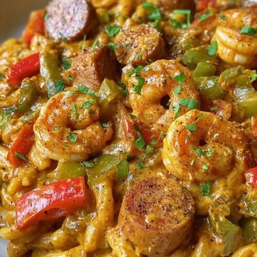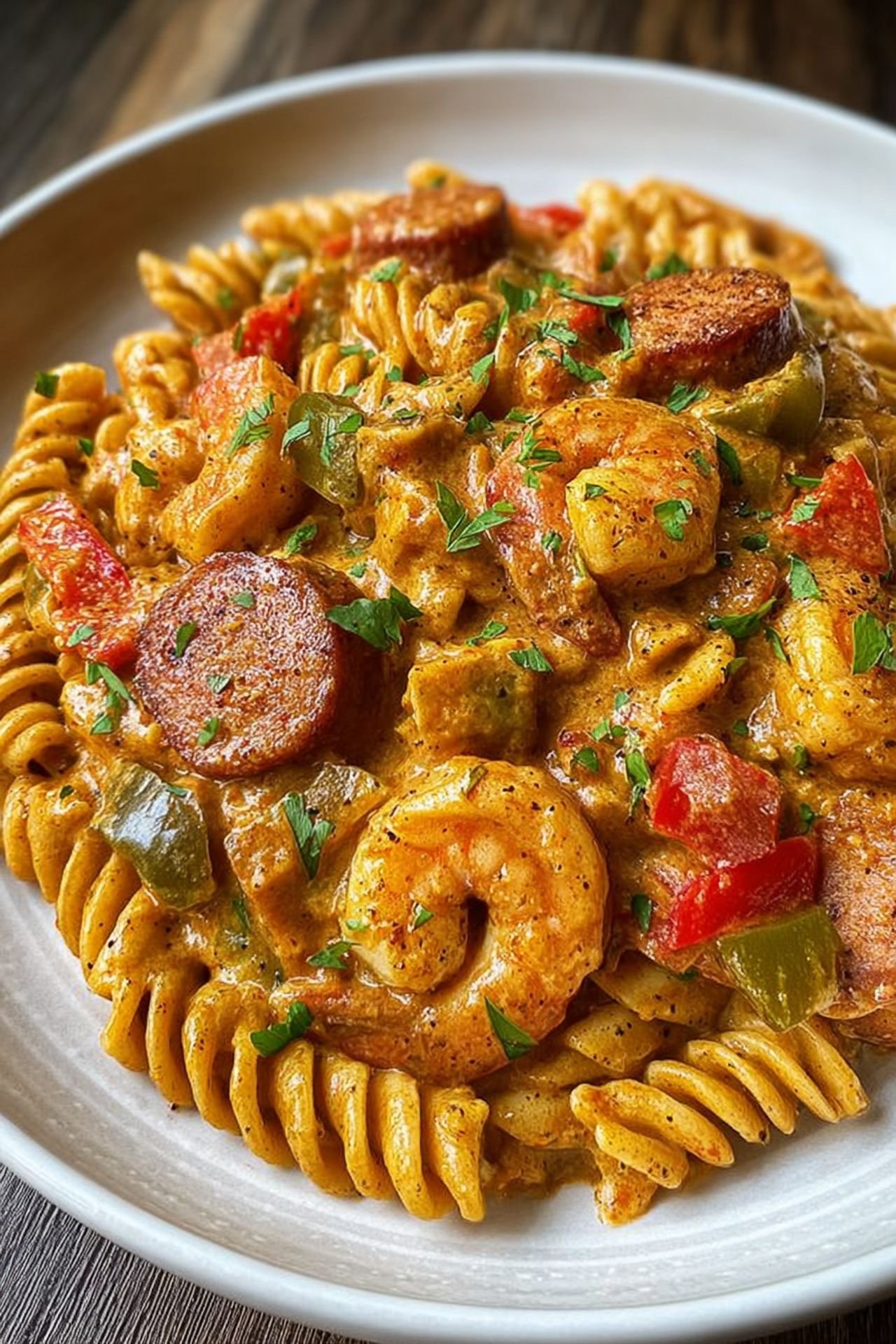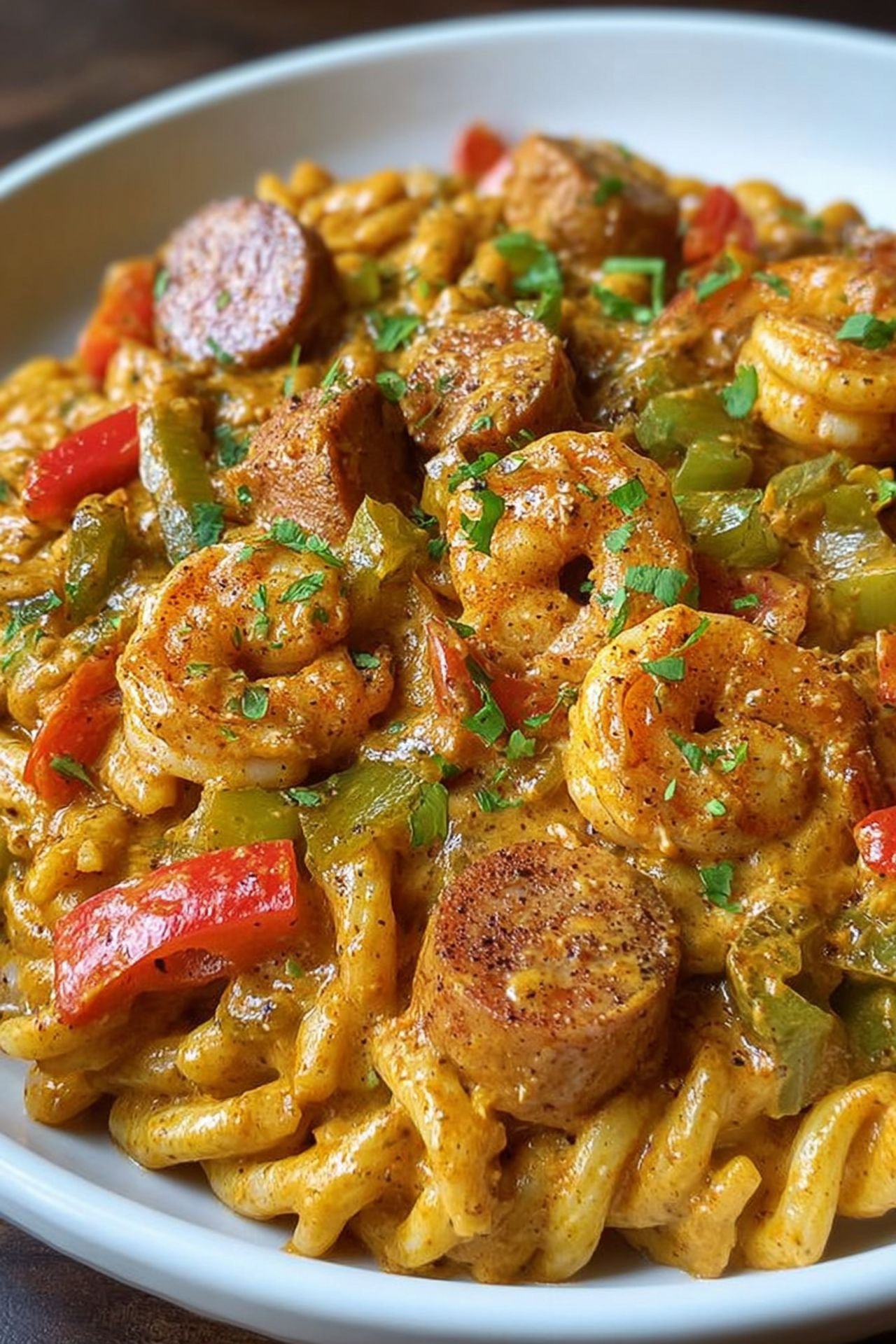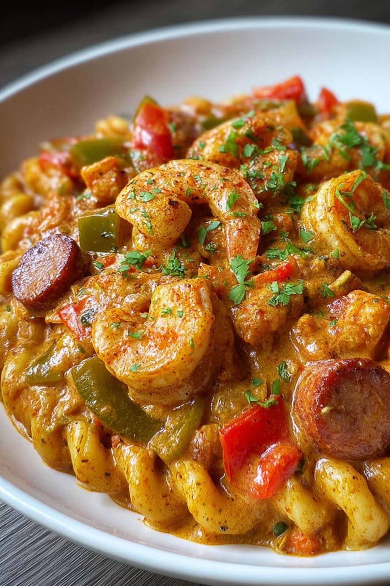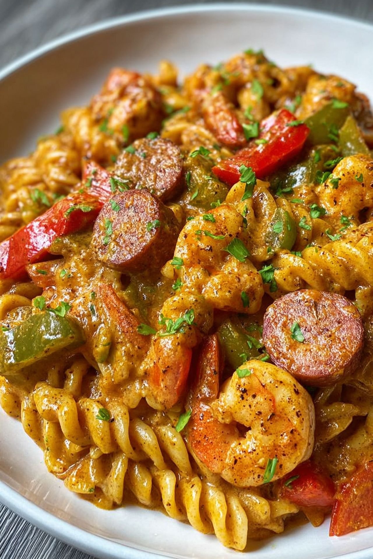 This dish brings New Orleans-style heat and richness into your home kitchen. Perfectly seasoned proteins and fresh veggies simmer in a creamy base for a deeply satisfying dinner experience. This pasta dish transforms simple ingredients into one of the best recipes for dinner you’ll want on repeat.