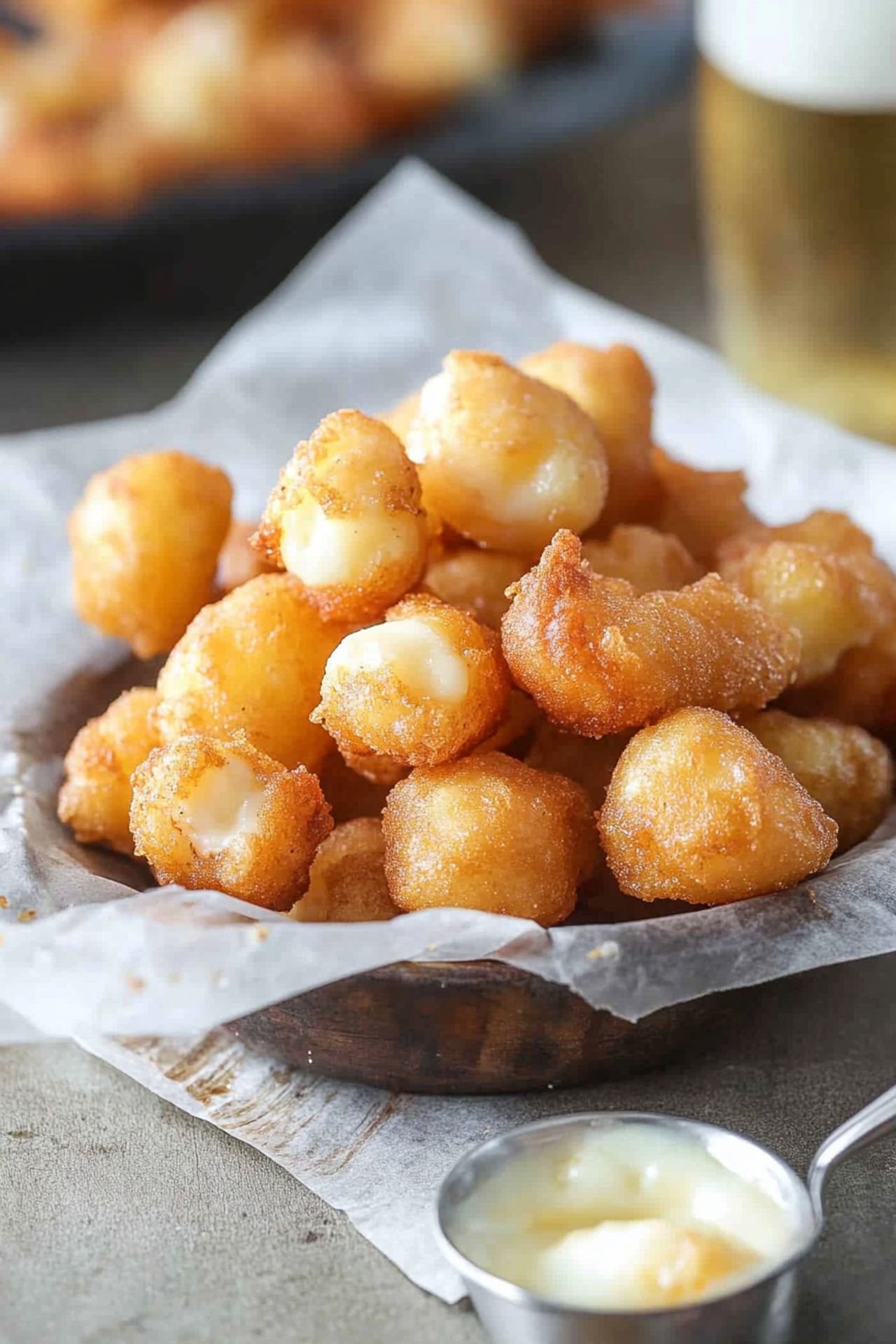 These crispy beer-battered cheese curds are the ultimate comfort snack for any cheese lover.
