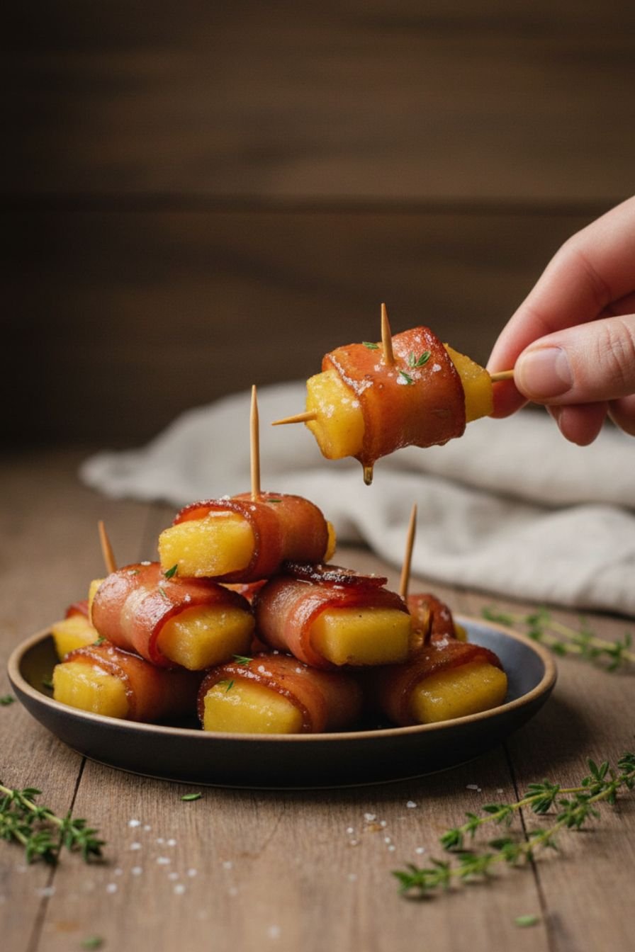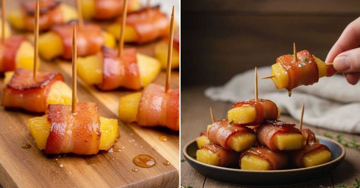 I firmly believe that the best party food is food that’s easy to eat, looks impressive, and bursts with flavor. This recipe checks every single box. These aren’t just any appetizer; they’re a guaranteed crowd-pleaser. The vibrant yellow of the pineapple peeking out from the crisped, golden bacon makes for a stunning presentation on any buffet table. They’re completely handheld, thanks to the simple toothpick, which means no plates or forks are required—exactly what you want when guests are mingling.
