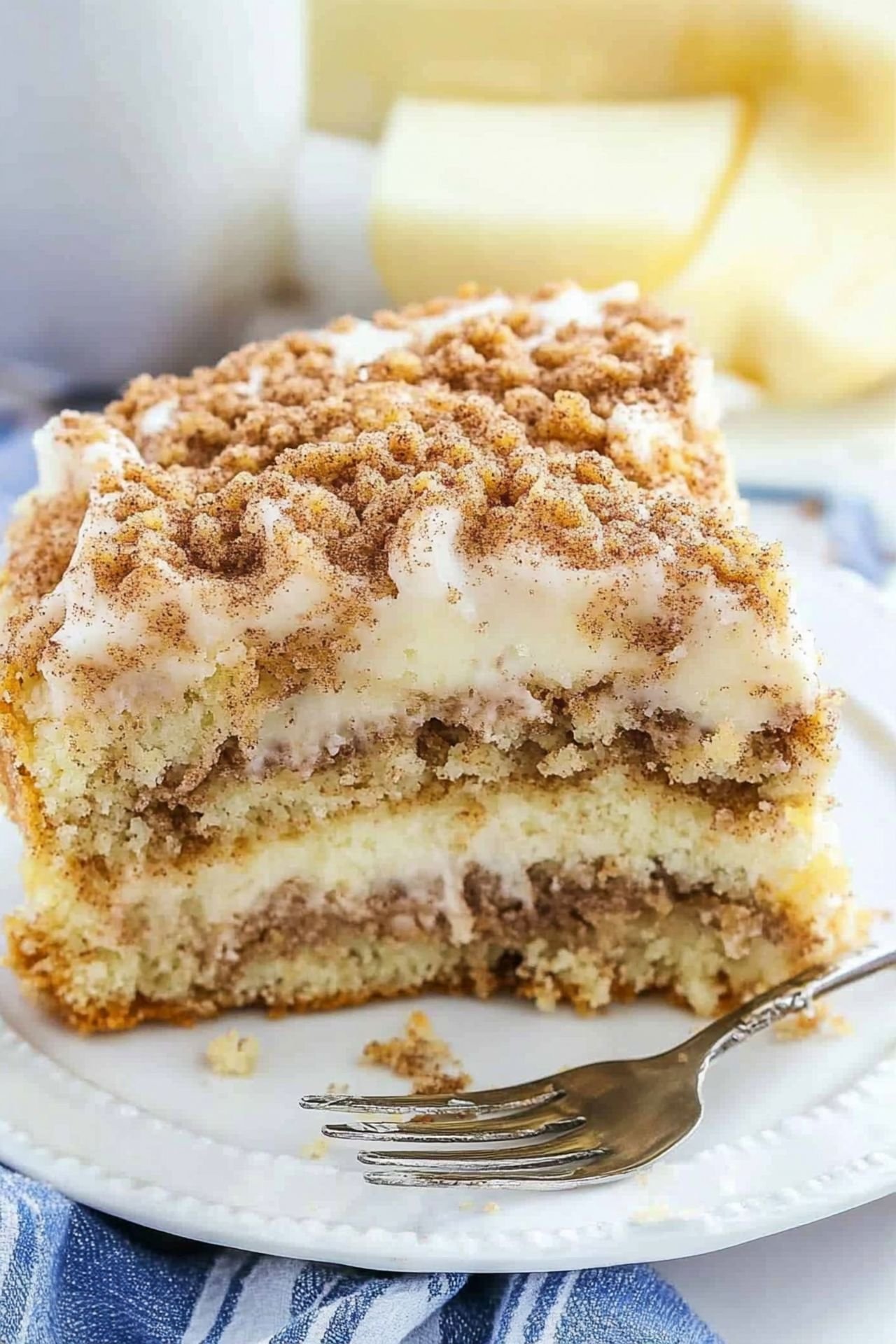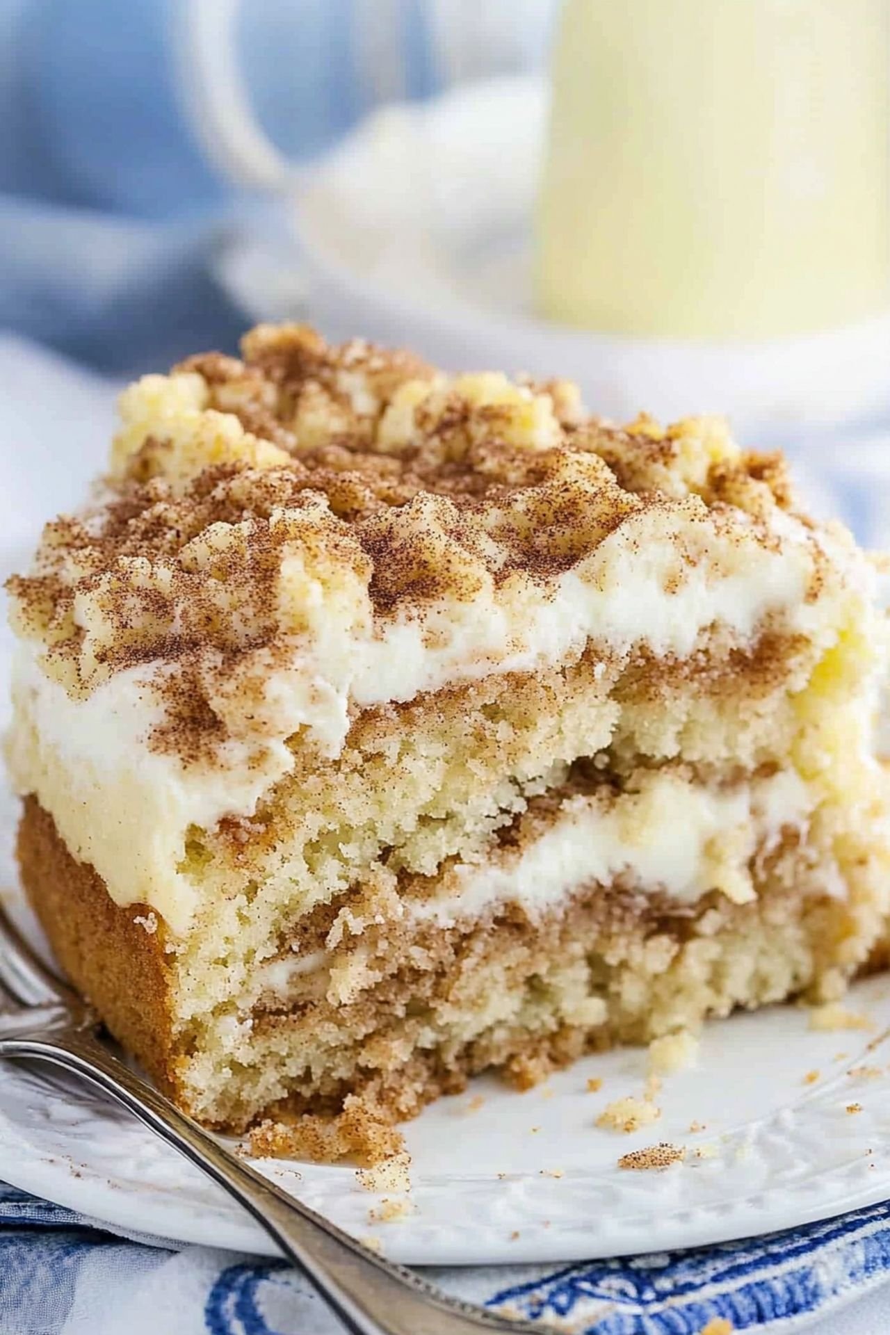 Can I make this cinnamon coffee cake ahead of time? Absolutely! You can bake it the night before and enjoy it fresh in the morning.Can I add nuts or raisins? Yes! Chopped pecans or walnuts add a great crunch, and raisins bring a touch of natural sweetness.What’s the best way to reheat it? Warm a slice in the microwave for 10-15 seconds for that fresh-from-the-oven taste.