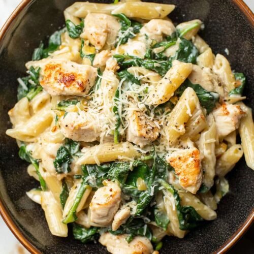 There’s just something magical about creamy pasta dishes that soothe the soul. This version pairs juicy chicken with al dente penne and a Parmesan-kissed cream sauce. Add in fresh spinach and a few pantry staples, and you’ve got one of those recipes for dinner that always satisfies.