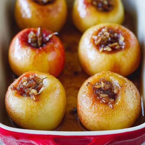 Use apples like Fuji or Honeycrisp for the best results — they hold their shape well during baking. You can also toss in chopped walnuts or pecans into the oat mixture for added crunch. And don’t skip the hot water in the pan — it helps steam the apples into tender perfection.