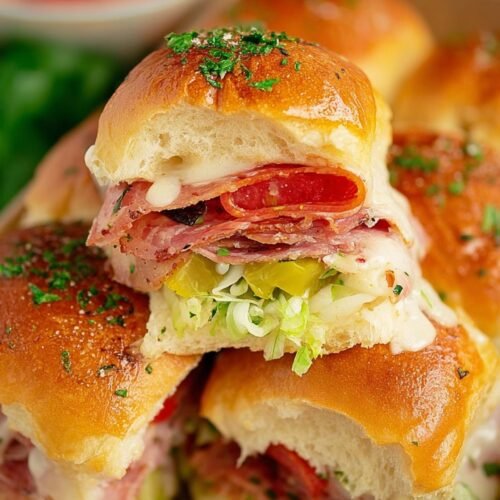 These Italian Sub Sliders are the ultimate easy recipe for any occasion. Whether you’re planning a casual dinner, a game day feast, or looking for recipes for dinner that satisfy everyone at the table, these sliders deliver big flavor with minimal effort. Layered with Italian meats and melty provolone cheese, they’re baked to golden, buttery perfection.
