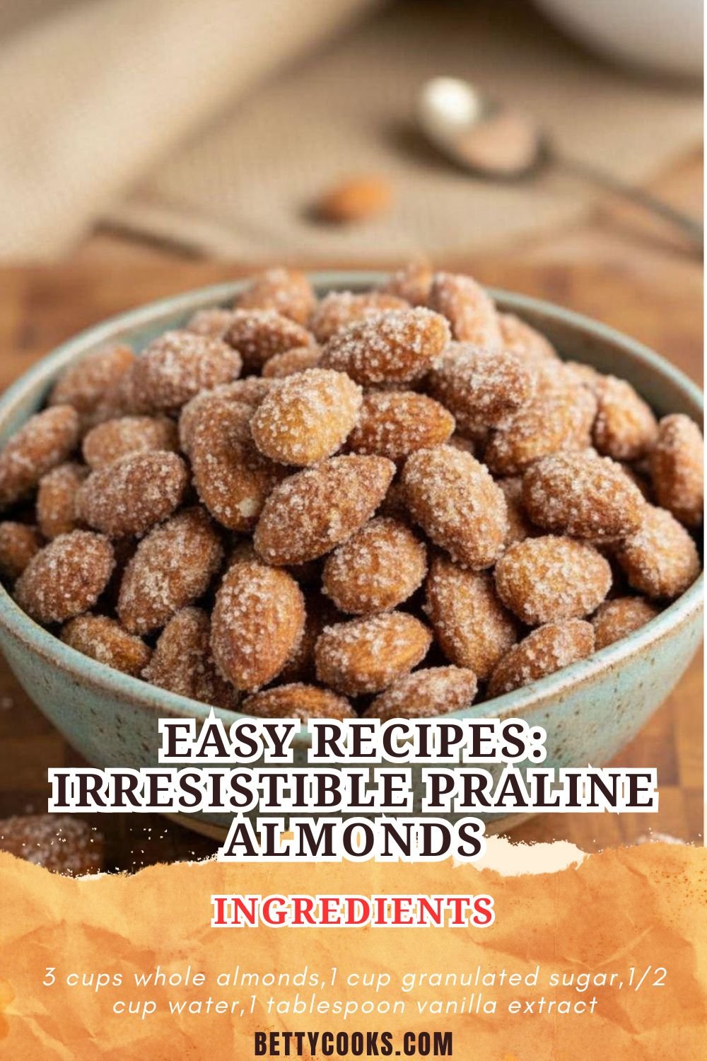 Inspired by classic Southern candied nuts, Betty wanted to craft something that felt festive yet simple enough for everyday cravings. At Betty Cooks, the goal is always to share easy recipes that deliver big on flavor and joy. These praline almonds have quickly become one of the most loved snack ideas on the site.