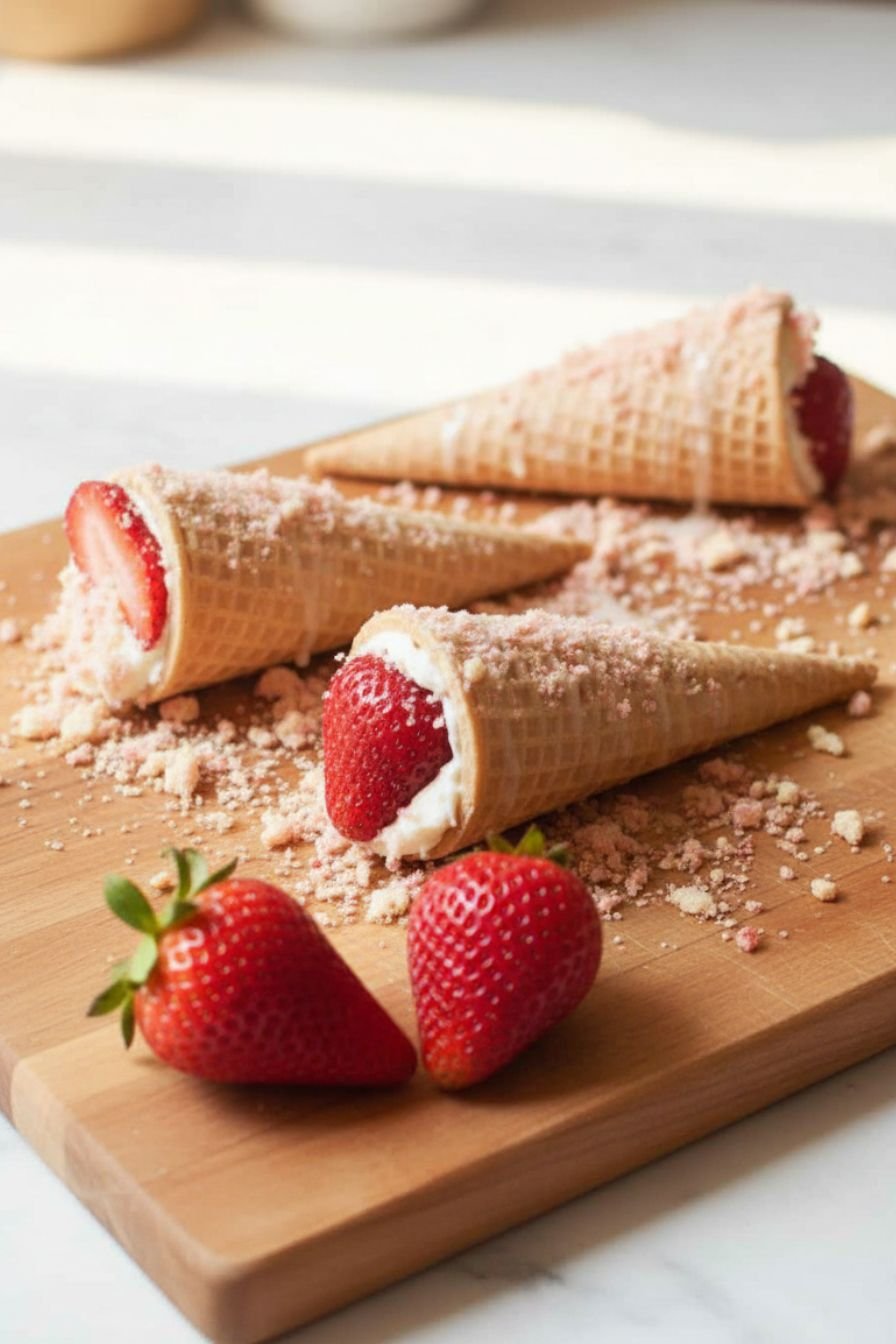 Easy Strawberry Crunch Cheesecake Cones Recipe