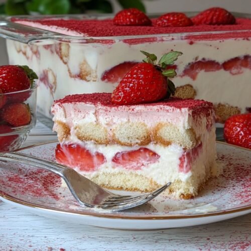 What makes this tiramisu stand out isn’t just the strawberries—it’s the dreamy layers. Between the soaked ladyfingers and velvety cream lies the real heart of this sweet easy recipe. The combination melts together after chilling, creating a dessert that’s equal parts rich and refreshing. With each bite, you’ll taste summer, love, and yes, easy desserts at their finest.