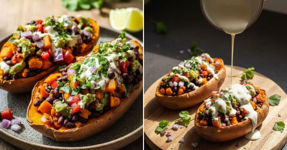 Keywords: black bean recipes, easy vegetarian meals, healthy comfort food, healthy dinner recipes, nutritious meals, quick dinner ideas, Stuffed Sweet Potatoes