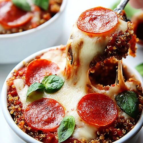 If you’re looking for healthy recipes that are easy to make, full of flavor, and incredibly satisfying, these quinoa pizza bowls are it. In just over 30 minutes, you’ll have a meal that’s bursting with your favorite pizza toppings—only healthier. Betty from Betty Cooks brings this clever idea to life by replacing pizza dough with fluffy quinoa, giving you a wholesome base for melted cheese, zesty sauce, and savory veggies.