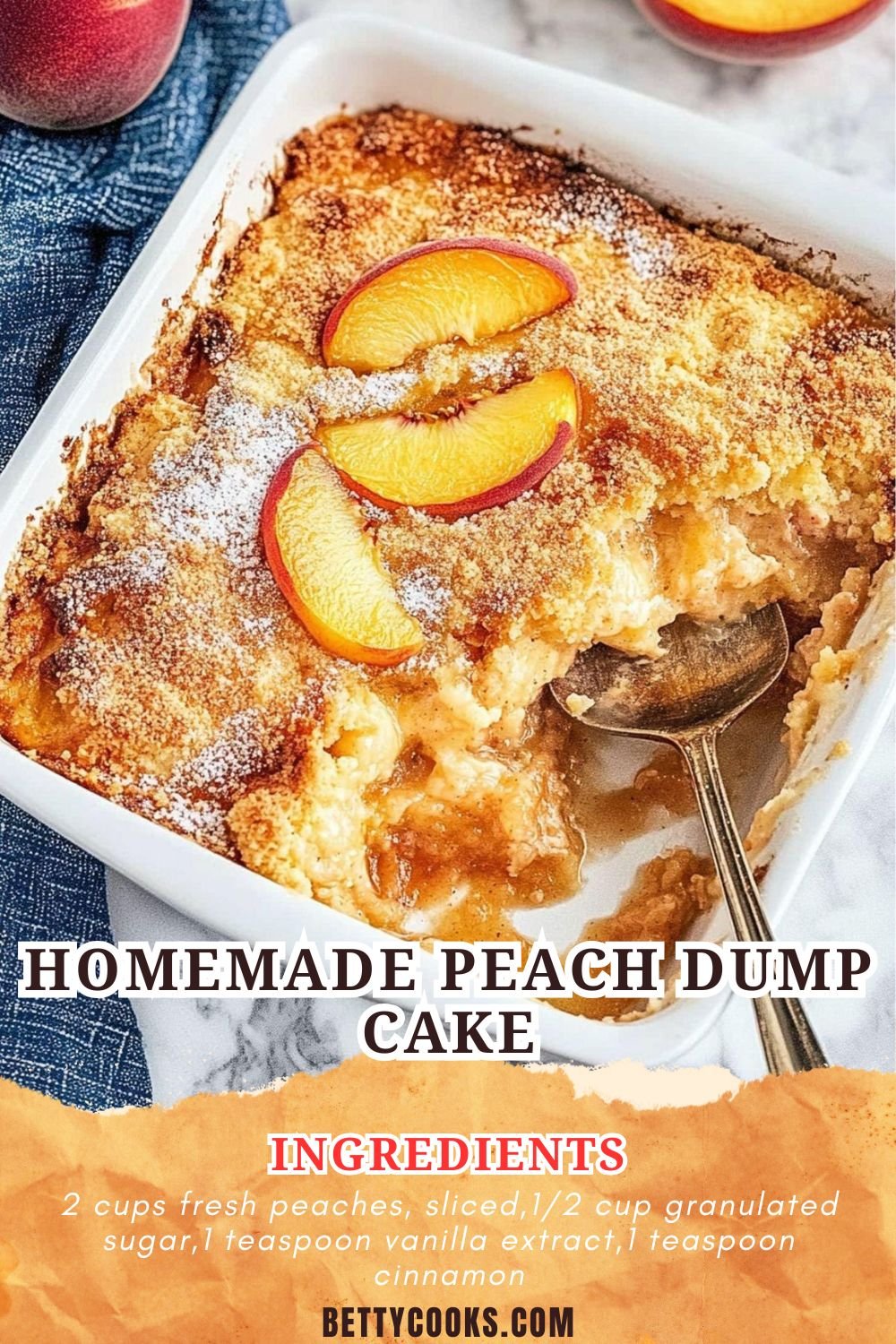 This homemade peach dump cake is the perfect blend of fresh, juicy peaches and a golden, buttery crust. It’s incredibly easy to make, requires minimal prep time, and is a crowd-pleaser for any occasion. Whether served warm with ice cream or enjoyed on its own, this dessert will quickly become a family favorite.