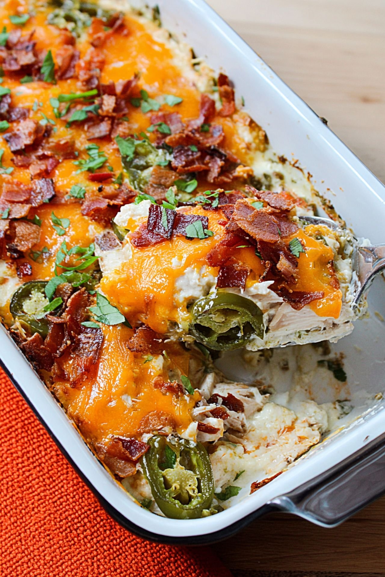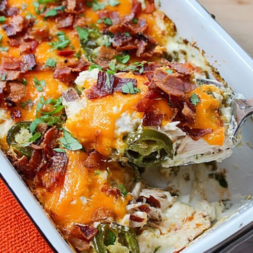This low carb jalapeño popper chicken casserole is a cheesy, spicy, and satisfying keto-friendly dinner perfect for weeknights.
