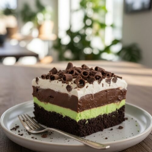 Every spoonful delivers the perfect bite of chocolate, creaminess, and mint. The cookie crust provides a slight crunch, while the pudding and whipped layers offer smooth contrast. Whether it’s a family dinner or festive potluck, this layered dessert makes a lasting impression with minimal effort.