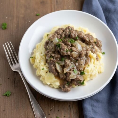 The classic way to serve this savory hamburger gravy is over a pile of fluffy, buttery mashed potatoes—it’s pure comfort in a bowl. But don’t stop there! This gravy is incredibly versatile. Try it over steamed rice, wide egg noodles, or even split open biscuits for a Southern-inspired twist. Feeling creative? Stir in a cup of frozen peas and carrots with the broth, add sliced mushrooms when browning the beef, or swap the Worcestershire for a splash of soy sauce for a different flavor profile. It’s a fantastic ground beef recipe that welcomes your personal touch.