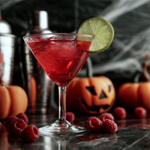 Raspberry Bloodtini Cocktail Recipe for Spooky Nights