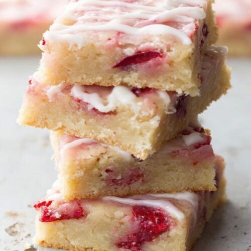 To make the most out of these blondies, use fresh strawberries instead of frozen—they hold their shape and texture better during baking. Don’t overmix the batter, and be sure to let them cool completely before slicing for clean, picture-perfect bars. When you’re looking for dessert recipes that are simple but stunning, this one should be at the top of your list.