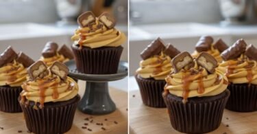 Twix Cupcakes with Caramel Buttercream Frosting