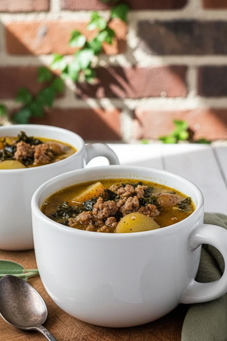 Every great soup begins with quality ingredients, and Zuppa Toscana is no exception. The ground Italian sausage serves as the flavor foundation, bringing herbaceous notes and savory depth that would be difficult to replicate with any other ingredient. The baby red potatoes are specifically chosen for their creamy texture and ability to hold their shape during cooking—they practically dissolve into the broth while maintaining structural integrity, creating that perfect tender bite. Fresh kale provides not only visual appeal but also impressive nutritional benefits including vitamins A, K, and C alongside powerful antioxidants. The minced garlic and onion create an aromatic base that’s essential to the soup’s complexity. Chicken broth serves as the liquid foundation, providing a neutral yet flavorful canvas for all the other ingredients to shine. Perhaps most importantly, the full-fat coconut milk transforms the broth into something creamy and luxurious without relying on heavy dairy products. Ghee, a clarified butter, has a higher smoke point than regular butter, making it ideal for sautéing the aromatics without risk of burning. Finally, the strategic use of crushed red pepper adds optional heat that balances the creamy elements beautifully.